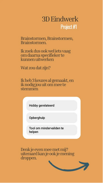 Met social media heb ik gevraagd naar wat anderen vinden. Dit zal ik meerdere keren posten. deze zal ik meerdere keren posten om meer feedback te krijgen. ondertussen in gesprek met familie over hobbies en waar ik mee kan helpen.